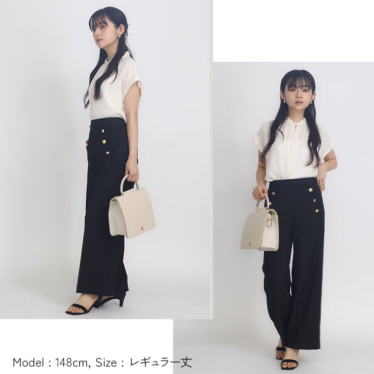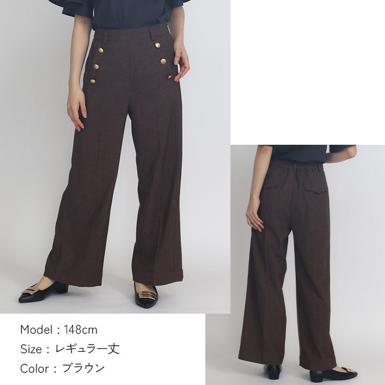 他の画像を見る 【Urban Basic】ボタン配置がおしゃれな上品ワイドパンツ 【SALE】マリンワイドパンツ SALE 通常販売価格 ¥ 14,300 → ¥ 8,580 税込 小さいサイズ専門店 S357 小さいサイズ 服 お気に入りに登録する