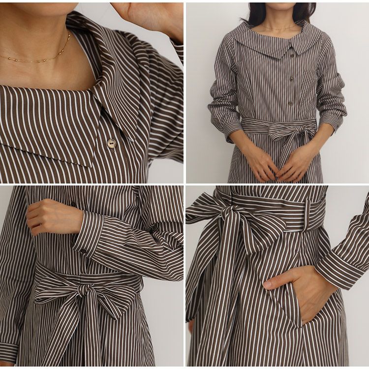 他の画像を見る アシンメトリーなネックデザインがポイントのシャツワンピース 【OUTLET】アシンメトリーシャツワンピース SALE 通常販売価格 ¥ 26,180 → ¥ 13,090 税込 小さいサイズ専門店 S357 小さいサイズ 服 お気に入りに登録する