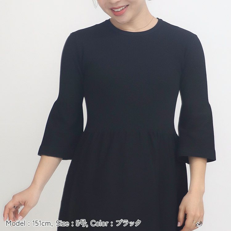 他の画像を見る ニット素材でも立体的シルエット 【SALE】フレアスリーブニットワンピース SALE 通常販売価格 ¥ 27,500 → ¥ 19,250 税込 小さいサイズ専門店 S357 小さいサイズ 服 お気に入りに登録する