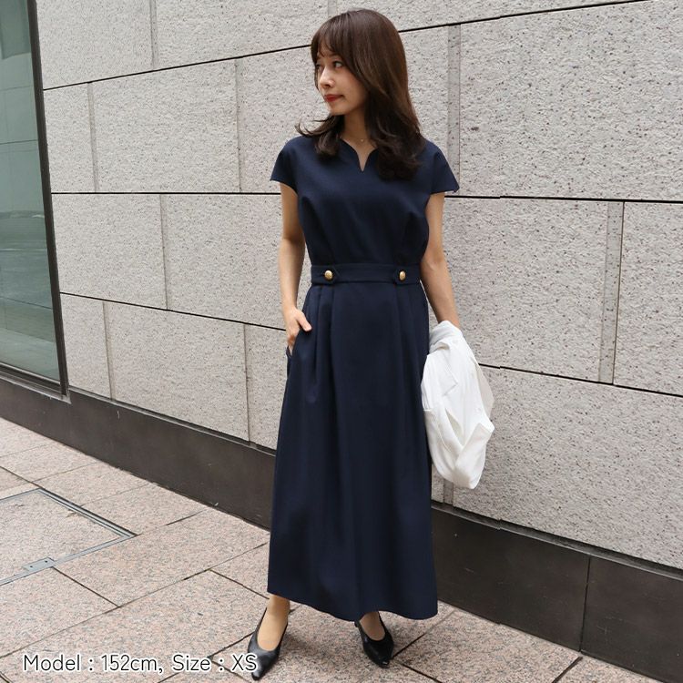 他の画像を見る オールインワン!?のような見え方のロングワンピース 【SALE】キーネックワンピース SALE 通常販売価格 ¥ 26,400 → ¥ 18,480 税込 小さいサイズ専門店 S357 小さいサイズ 服 お気に入りに登録する