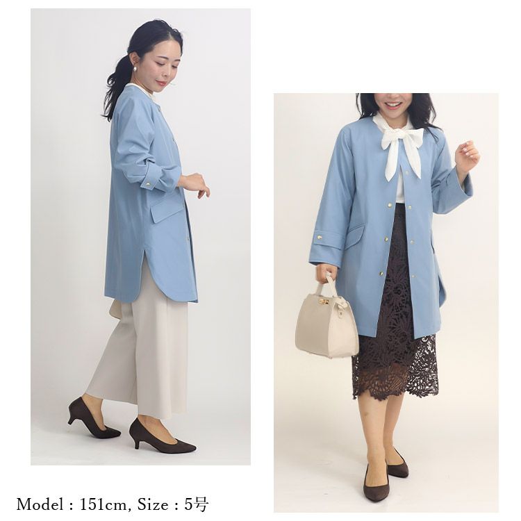 他の画像を見る 撥水加工付きも嬉しい春コート 【SALE】【撥水加工】ノーカラーコート SALE 通常販売価格 ¥ 23,100 → ¥ 16,170 税込 小さいサイズ専門店 S357 小さいサイズ 服 お気に入りに登録する