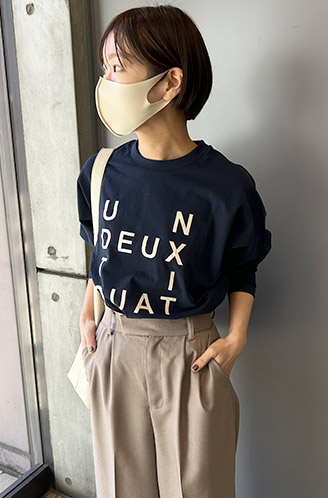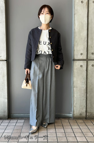 caho「春夏通して着やすい、明るいグレーをセレクトしました。モノトーンで合わせても暗くならず、コンパクトなジャケットに着てもスッキリします。販売中のコラボアイテム「ツイードジャケット」とも、合わせられるようバランスやカラーもそれぞれ合わせました。」