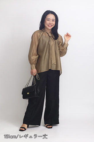 涼やかで縦ラインが印象的なワイドシルエットです。