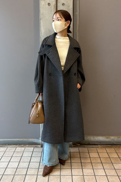 初冬は軽やかに羽織り、真冬はボタンを留めてしっかり防寒と、インナー次第でロングシーズン活躍。