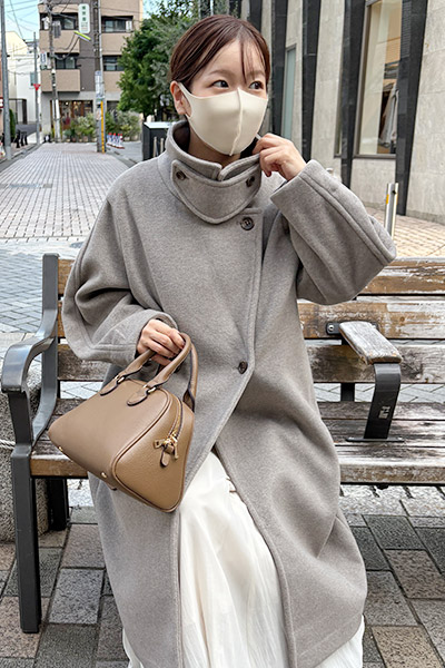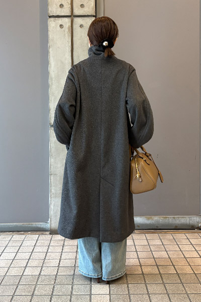 小柄さんの体型に寄り添った設計と、ふっくらとなめらかな素材感で、見た目も着心地も妥協なし。初冬から真冬まで長く使える軽やかでスタイリッシュなロングコートが完成しました。