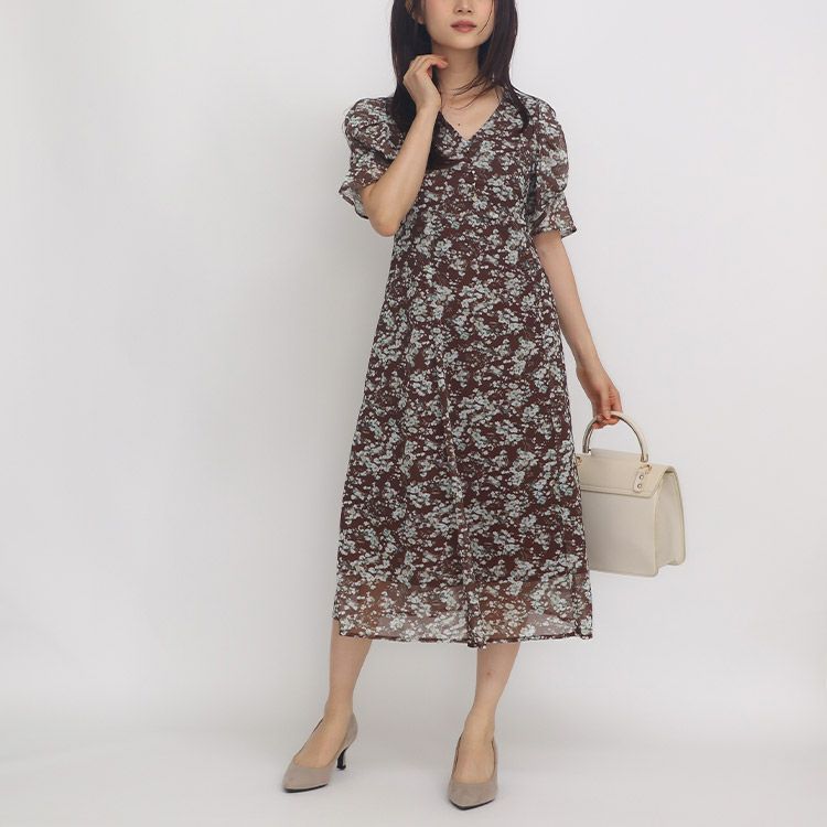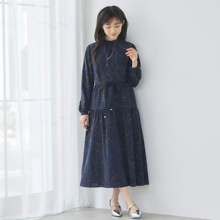 線書フラワープリントワンピース