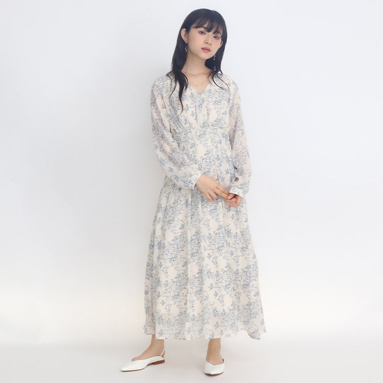 ぼかしフラワープリントワンピース