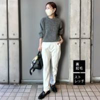 アイボリーを購入、こういった淡い色は実際に見ないと自分の感覚と違ったりしますね、アイボリーやオフホワイトやエクリュなど白系の呼名は数々あれど正直違いがよくわかりません、今回はアイボリーで自分としてはもうちょっと白い感じを予想していました、形や着用の感じは◯です