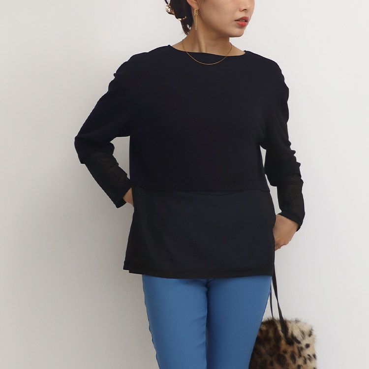 他の画像を見る 袖と裾のシアー素材で涼し気トップス 【ブラックフライデーセール】シアーフライスレイヤード風カットソー SALE 通常販売価格 ¥ 15,400 → ¥ 6,930 税込 小さいサイズ専門店 S357 小さいサイズ 服 お気に入りに登録する
