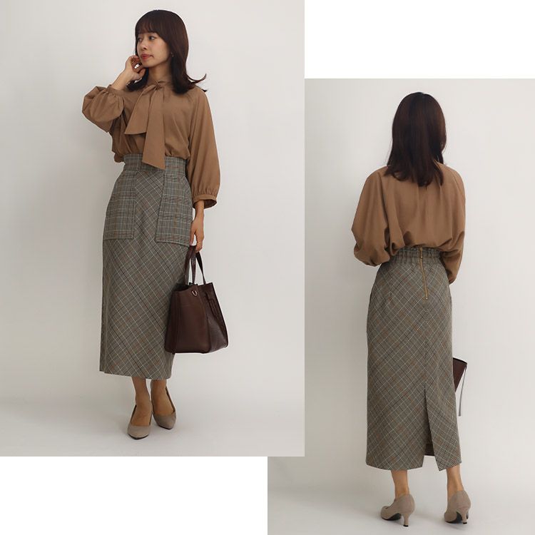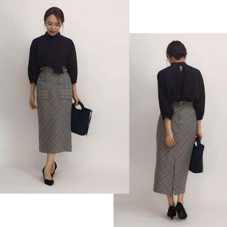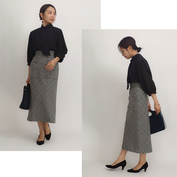 他の画像を見る ハイウエストデザインで美シルエット 【ブラックフライデーセール】グレンチェックタイトスカート SALE 通常販売価格 ¥ 17,600 → ¥ 7,920 税込 小さいサイズ専門店 S357 小さいサイズ 服 お気に入りに登録する