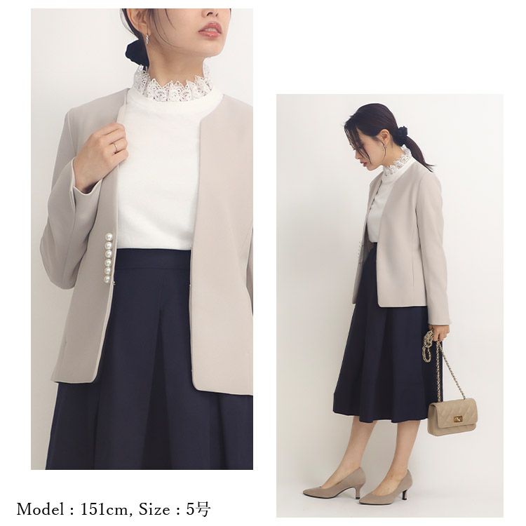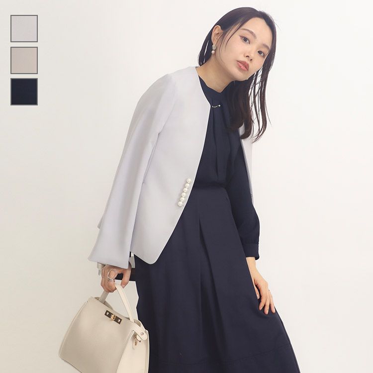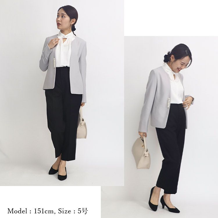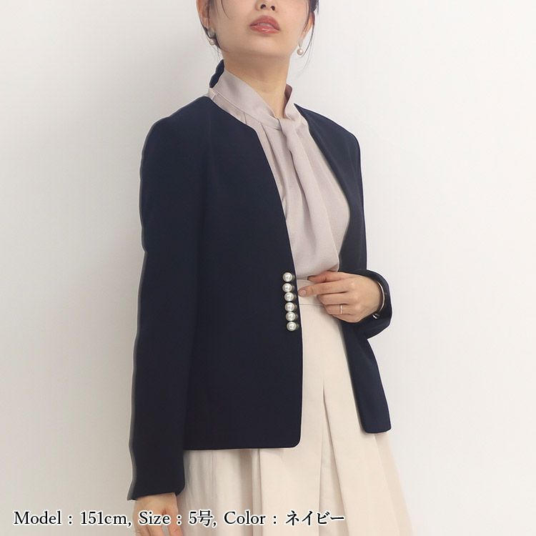 他の画像を見る 手付けのパールがとっても華やかなカラーレスジャケット 【ブラックフライデーセール】ノーカラーパール付ジャケット SALE 通常販売価格 ¥ 11,000 → ¥ 6,930 税込 小さいサイズ専門店 S357 小さいサイズ 服 お気に入りに登録する