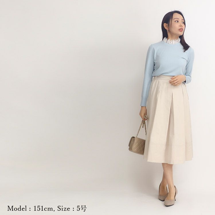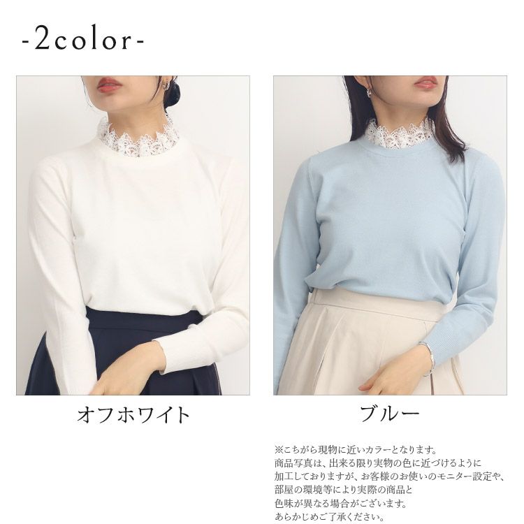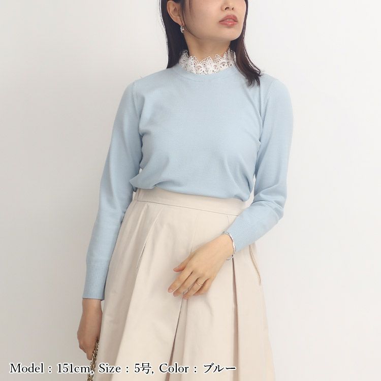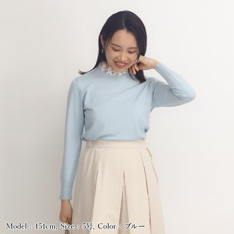 他の画像を見る レイヤード風な異素材ニット 【ブラックフライデーセール】襟レースフリルドッキングニット SALE 通常販売価格 ¥ 19,800 → ¥ 14,256 税込 小さいサイズ専門店 S357 小さいサイズ 服 お気に入りに登録する