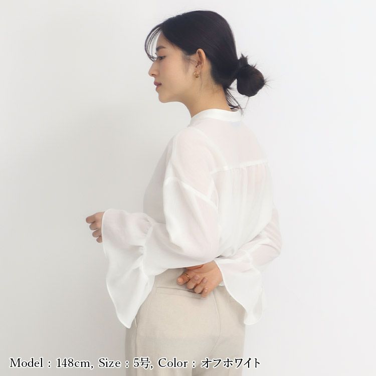 他の画像を見る 袖のラッフルスリーブが上品 【ブラックフライデーセール】シアーラッフルスリーブブラウス SALE 通常販売価格 ¥ 15,400 → ¥ 6,930 税込 小さいサイズ専門店 S357 小さいサイズ 服 お気に入りに登録する