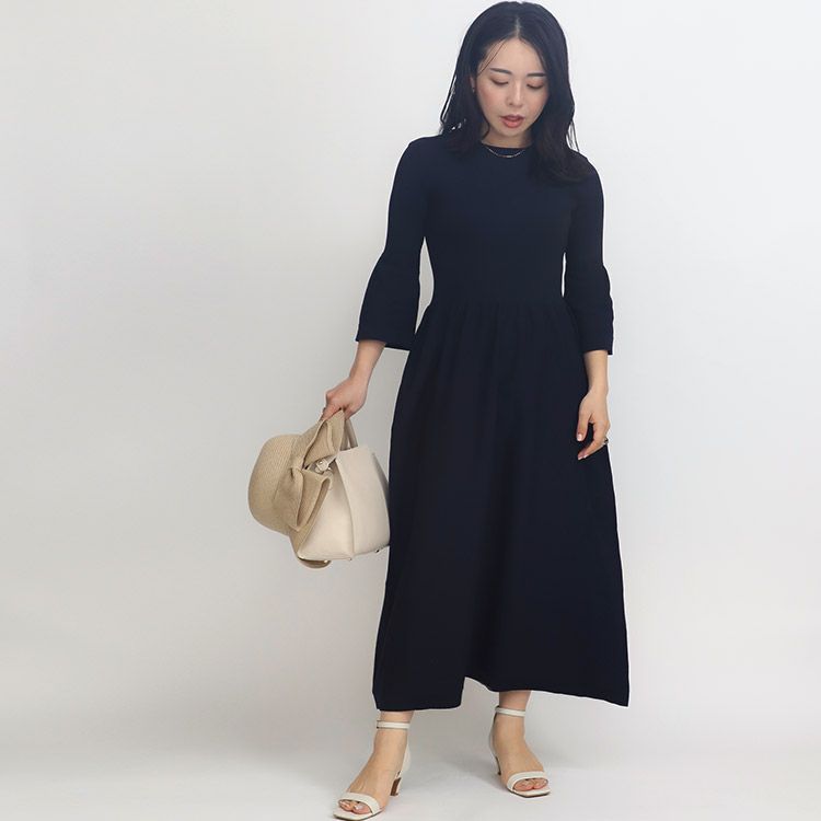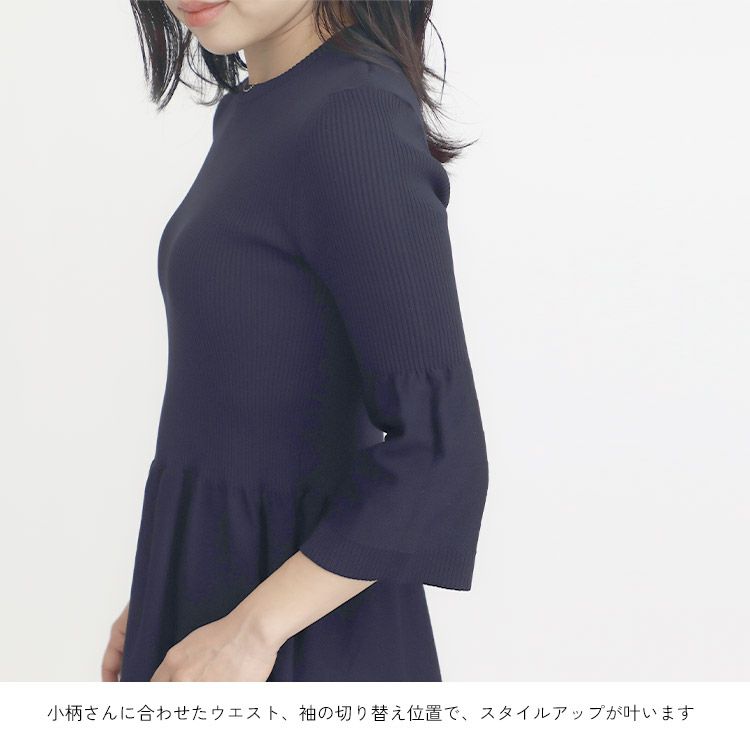 他の画像を見る ニット素材でも立体的シルエット 【ブラックフライデーセール】フレアスリーブニットワンピース SALE 通常販売価格 ¥ 27,500 → ¥ 17,325 税込 小さいサイズ専門店 S357 小さいサイズ 服 お気に入りに登録する