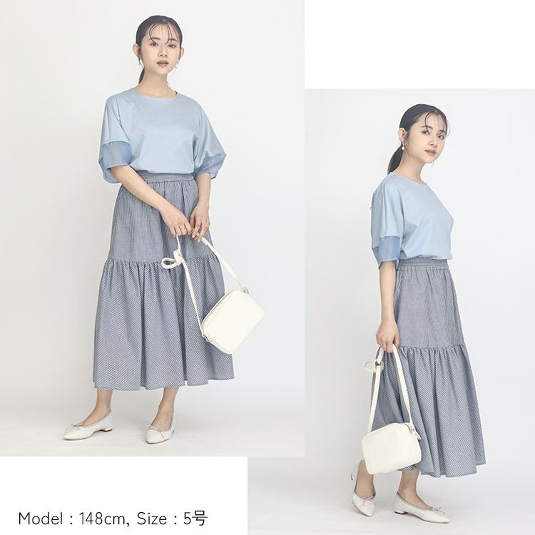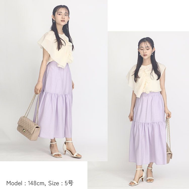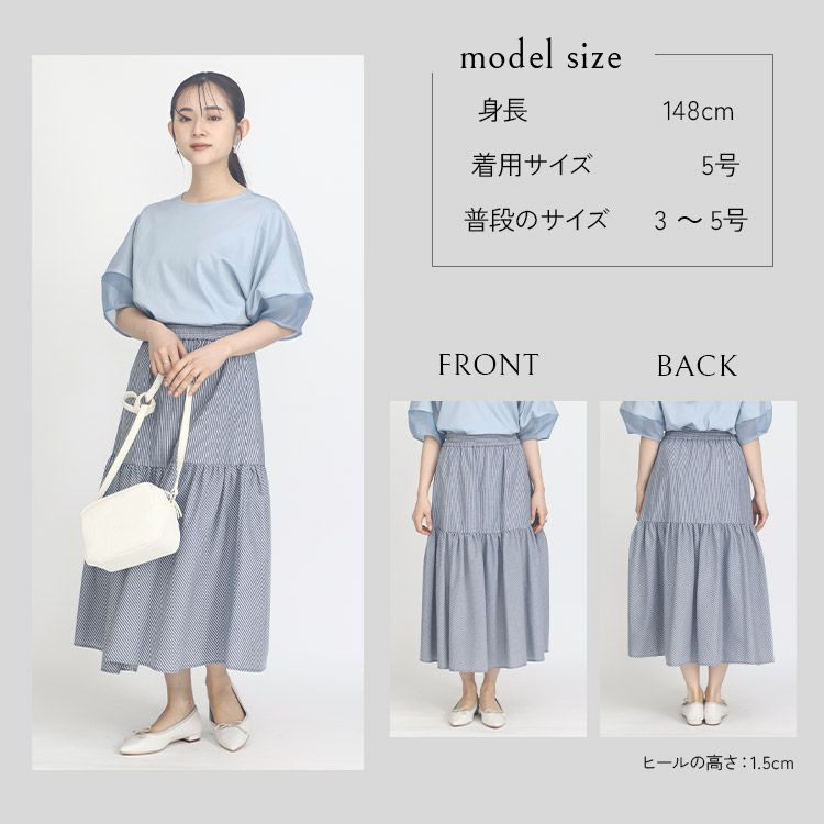 他の画像を見る 爽やかでクリーンな印象のストライプティアードスカート 【ブラックフライデーセール】ストライプティアードスカート SALE 通常販売価格 ¥ 25,300 → ¥ 11,385 税込 小さいサイズ専門店 S357 小さいサイズ 服 お気に入りに登録する