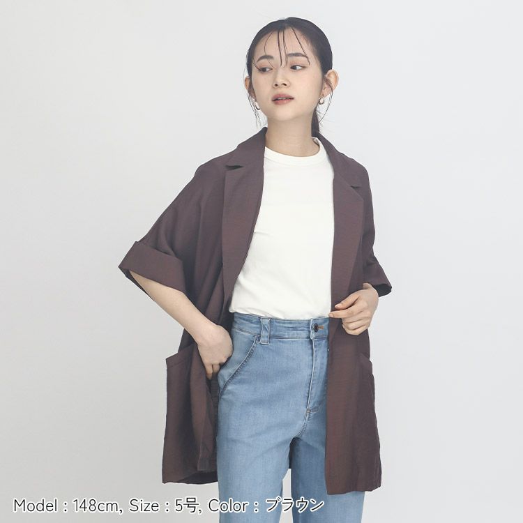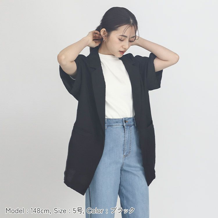 他の画像を見る ゆるっとリラックス感のある半袖ジャケット 【ブラックフライデーセール】スラブクロス半袖ジャケット SALE 通常販売価格 ¥ 13,200 → ¥ 7,128 税込 小さいサイズ専門店 S357 小さいサイズ 服 お気に入りに登録する
