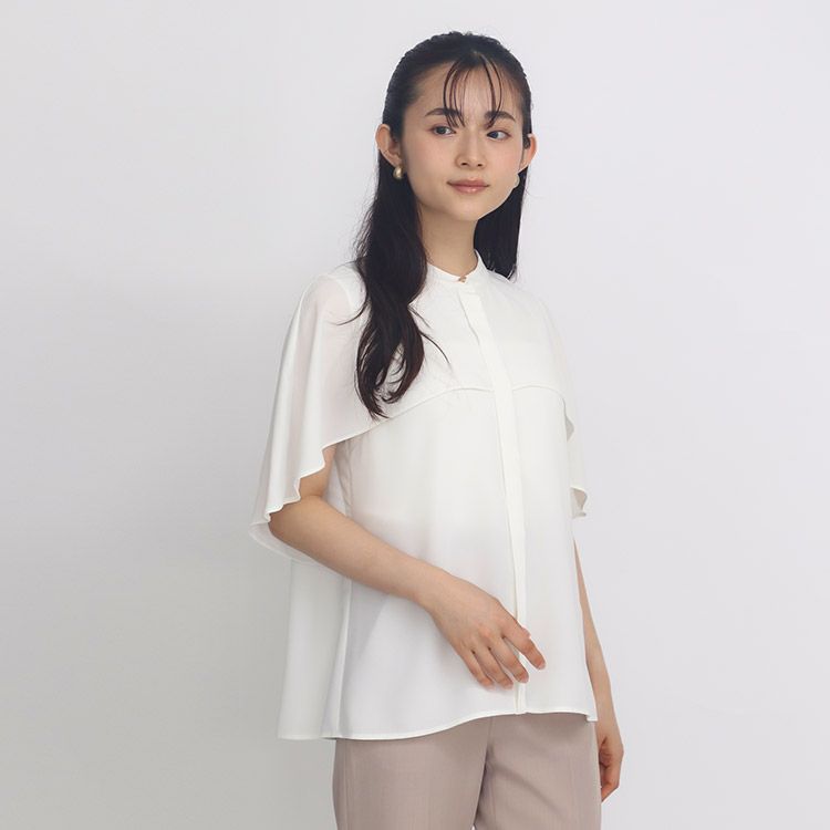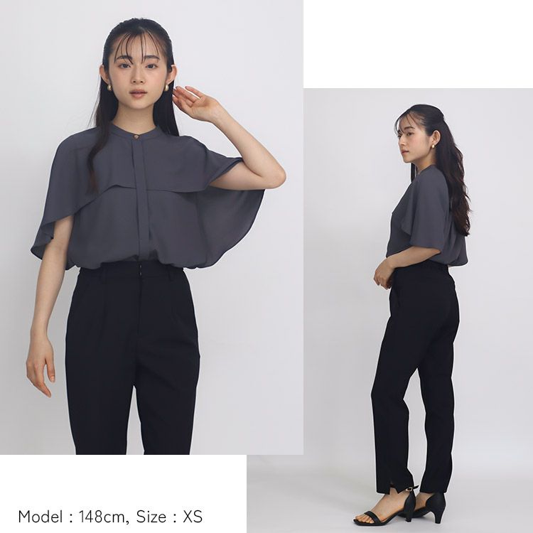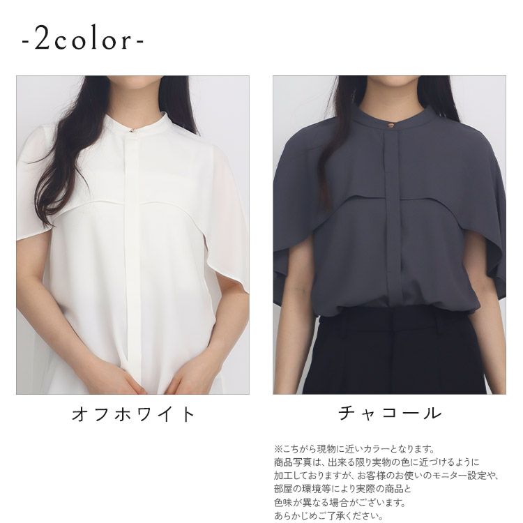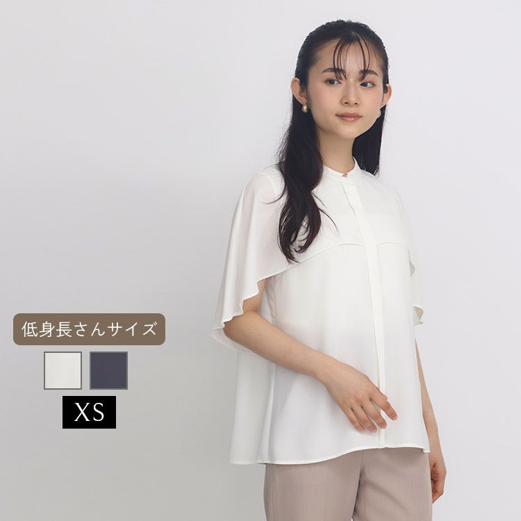 他の画像を見る オフィスシーンに使いやすいちょっとデザインの入った”きちんと”ブラウス。 【ブラックフライデーセール】ジョーゼットケープブラウス 通常販売価格 ¥ 13,200 → ¥ 7,128 税込 小さいサイズ専門店 S357 小さいサイズ 服 お気に入りに登録する