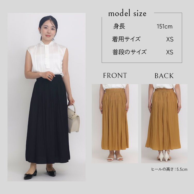 他の画像を見る 光沢感とギャザーが作り出す存在感抜群のスカート 【ブラックフライデーセール】割線デシンギャザースカート 通常販売価格 ¥ 19,800 → ¥ 10,692 税込 小さいサイズ専門店 S357 小さいサイズ 服 お気に入りに登録する