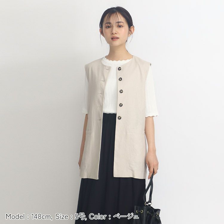 他の画像を見る 夏らしいムード漂うリネン素材アウター 【SALE】ベルト付リネンベスト SALE 通常販売価格 ¥ 14,300 → ¥ 7,150 税込 小さいサイズ専門店 S357 小さいサイズ 服 お気に入りに登録する