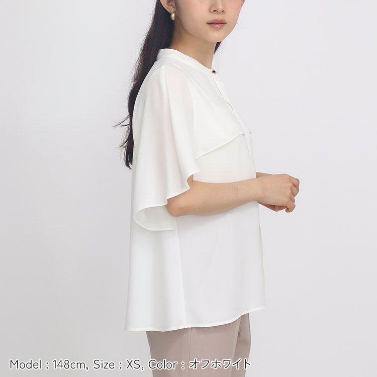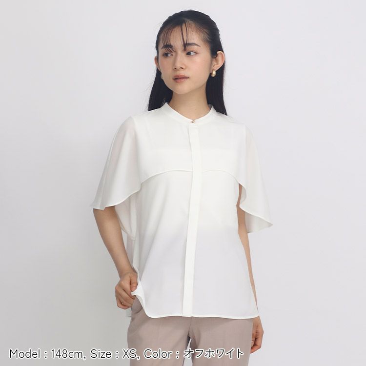 他の画像を見る オフィスシーンに使いやすいちょっとデザインの入った”きちんと”ブラウス。 【SALE】ジョーゼットケープブラウス 通常販売価格 ¥ 13,200 → ¥ 7,920 税込 小さいサイズ専門店 S357 小さいサイズ 服 お気に入りに登録する