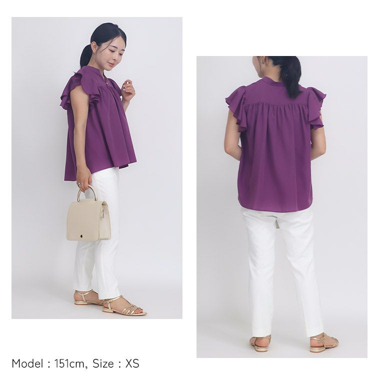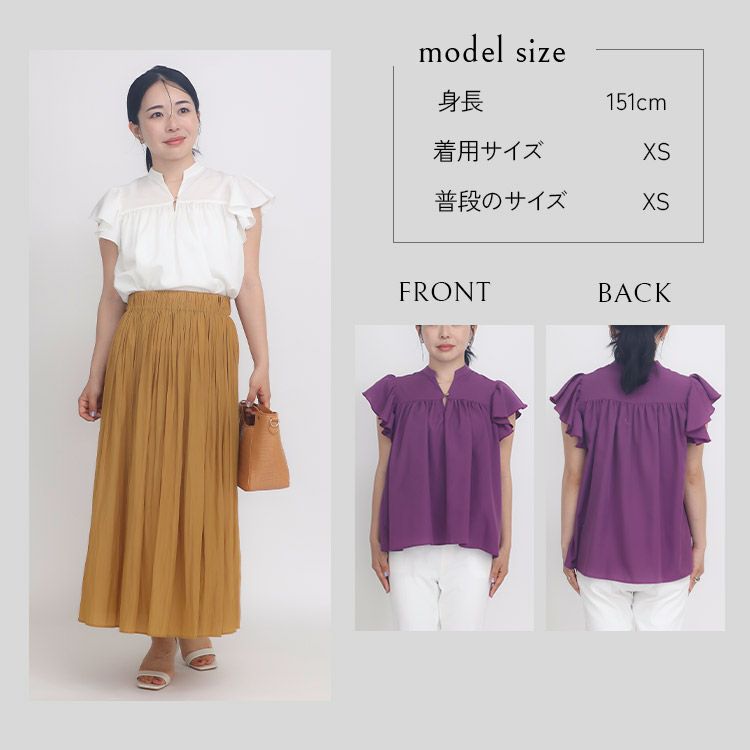 他の画像を見る フリルとギャザーが大人の魅力を引き立てるブラウス 【SALE】切り替えフレンチ袖ブラウス 通常販売価格 ¥ 15,400 → ¥ 9,240 税込 小さいサイズ専門店 S357 小さいサイズ 服 お気に入りに登録する