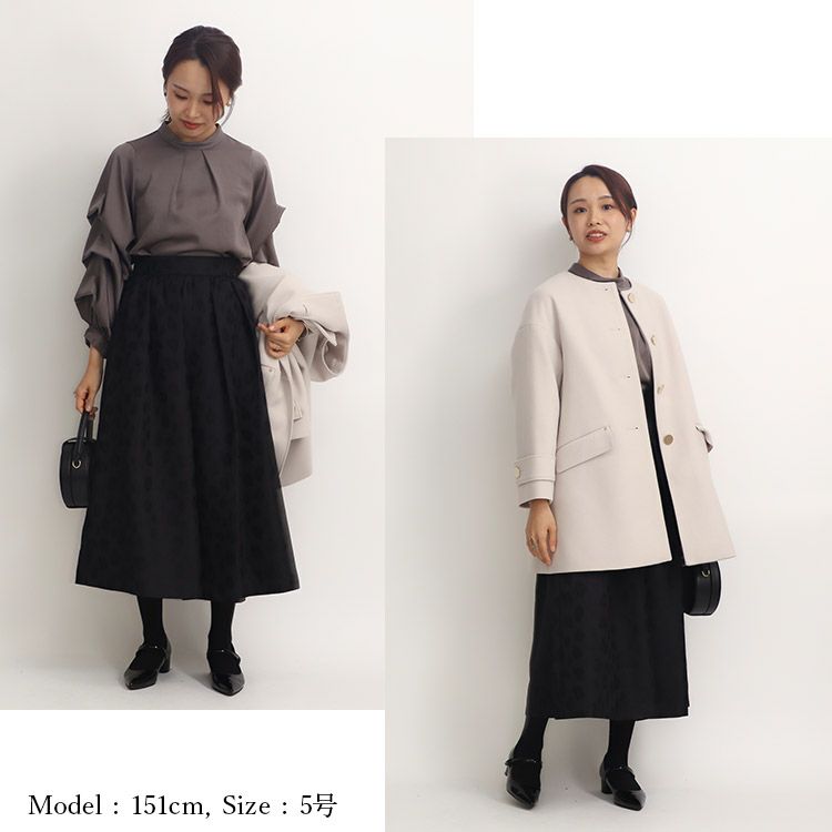 他の画像を見る ぽこぽことした表面感のふんわりタックスカート 【SALE】サテンタックジャカードフレアスカート SALE 通常販売価格 ¥ 12,100 → ¥ 3,630 税込 在庫切れ 小さいサイズ専門店 S357 小さいサイズ 服 お気に入りに登録する