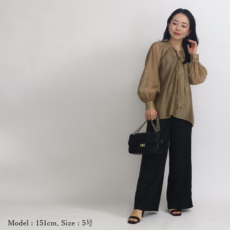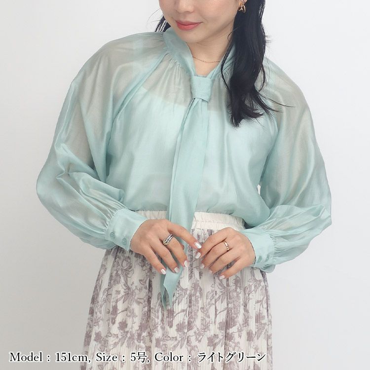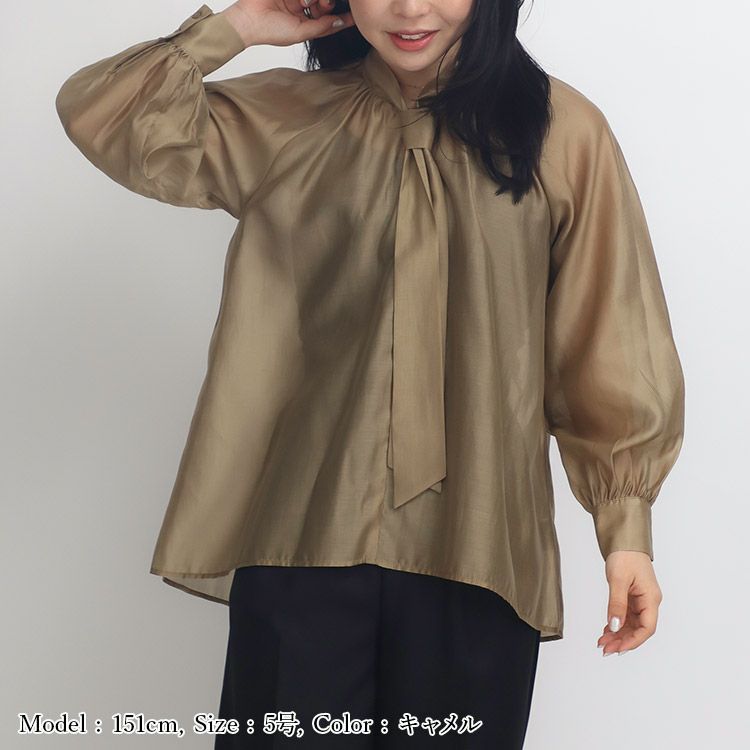 他の画像を見る 程よい透け感のある大人ブラウス 【SALE】ブライトシアーボウタイブラウス SALE 通常販売価格 ¥ 9,900 → ¥ 6,930 税込 小さいサイズ専門店 S357 小さいサイズ 服 お気に入りに登録する